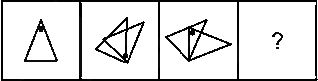43. एक कागज़ को नीचे दर्शाए गए अनुसार मोड़ा और काटा जाता है। खोलने पर यह किस प्रकार दिखाई देगा?